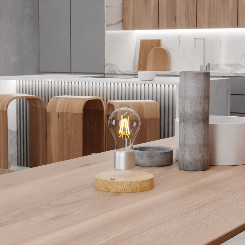 Deze gepatenteerde designlamp combineert minimalistische stijl met geavanceerde technologie. Dankzij magnetische levitatie zweeft en draait de lamp boven de basis – een adembenemend schouwspel dat elke ruimte transformeert.