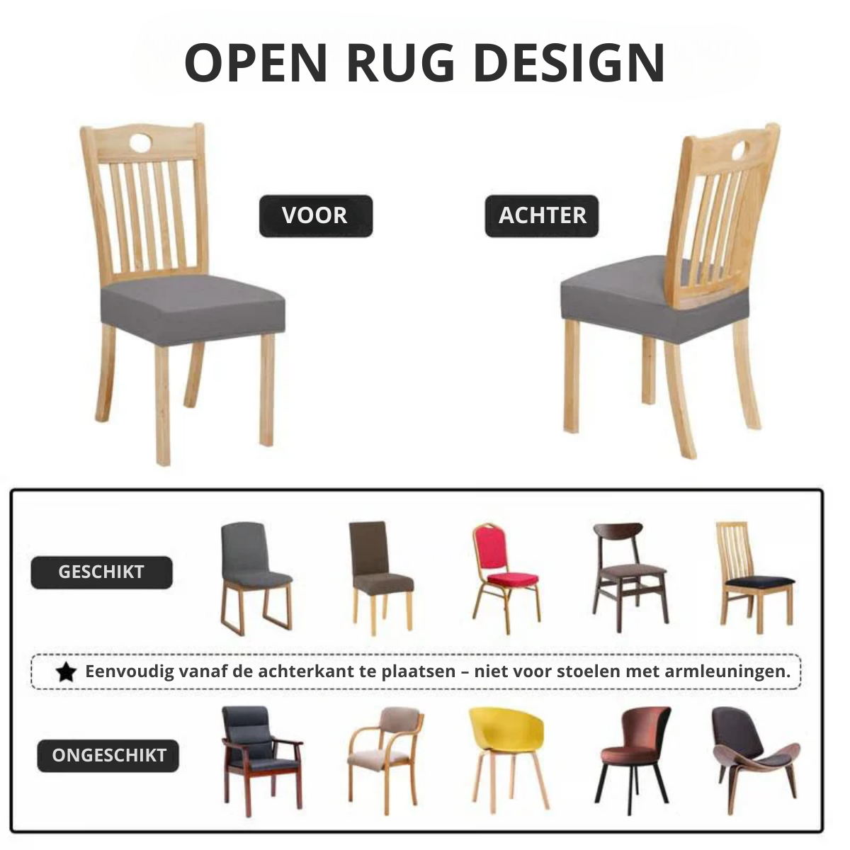 Afneembaar en machinewasbaar – Makkelijk te verwijderen en in de wasmachine te stoppen. Houdt het onderhoud eenvoudig, zodat je stoelen er altijd schoon en als nieuw uitzien met minimale inspanning.